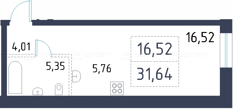 - 31.64/16.52/5.76 м²