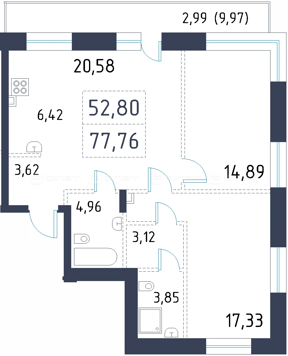 - 77.76/52.8/6.42 м²